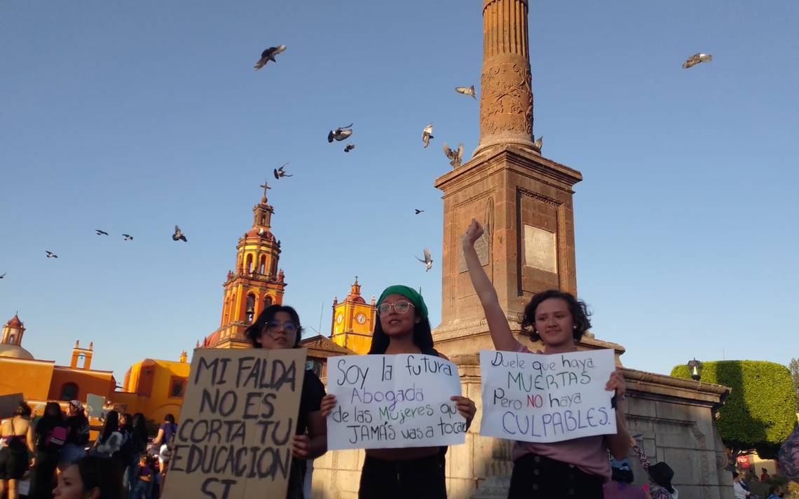 Cientos de mujeres que participan en la marcha conmemorativa al 8 de marzo arribaron en punto de las 18:00 horas al Jardín Independencia, en la zona centro de San Juan del Río. De acuerdo con estimaciones de la Secretaría de Seguridad Pública Municipal (SSPM) alrededor de 450 mujeres se congregaron en este punto de la ciudad.