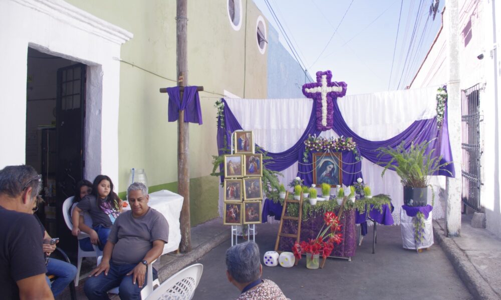 “Este altar de la Virgen de Dolores tiene aquí en esta calle aproximadamente unos seis años. Desde que nosotros llegamos aquí a esta calle, lo empezamos a hacer junto con las vecinas, porque antes lo hacíamos particular en nuestra casa (…) es previo a lo que es el Domingo de Ramos y ocho días antes a la Semana Santa, se coloca el altar de la Virgen de los Dolores. Como puedes ver son siete dolores, son siete marcos de los dolores que la Virgen sintió” señaló Ricardo Cacillo Gómez.