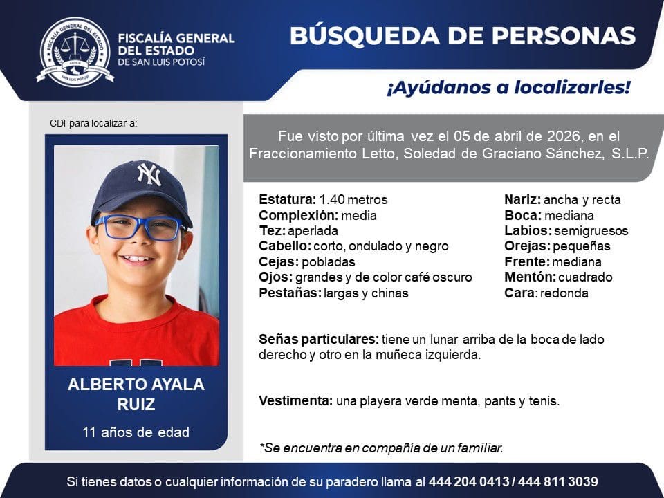 La ficha de búsqueda emitida por la Fiscalía General de Justicia del Estado señala que el menor se encuentra con un familiar, lo que sugiere que no se trata de un hecho vinculado a la delincuencia organizada ni a la inseguridad pública, sino a un conflicto intrafamiliar.