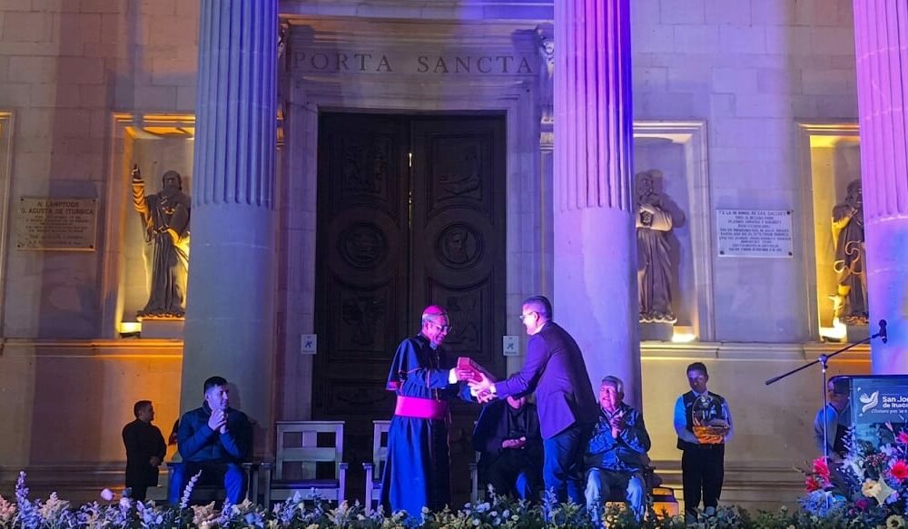 El Ayuntamiento de San José Iturbide, Guanajuato, otorgó formalmente el reconocimiento de “Ciudadano Distinguido” a Monseñor Fidencio López Plaza, Obispo de la Diócesis de Querétaro, en una ceremonia que tuvo lugar en el atrio del Santuario Diocesano del Señor del Santo Entierro y del Señor San José en el centro del municipio guanajuatense.
