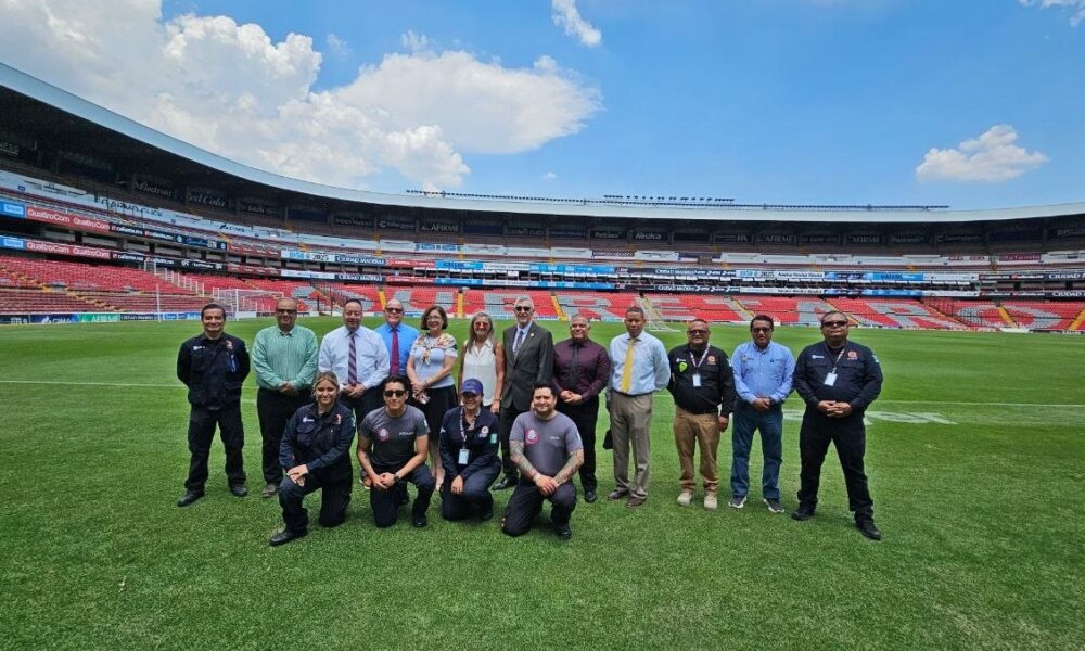 Como parte de la agenda de trabajo, la delegación recorrió el Estadio Corregidora, donde personal del área de Atención de Riesgos y Eventos de la CEPCQ expuso el modelo operativo implementado para garantizar la seguridad en eventos masivos.