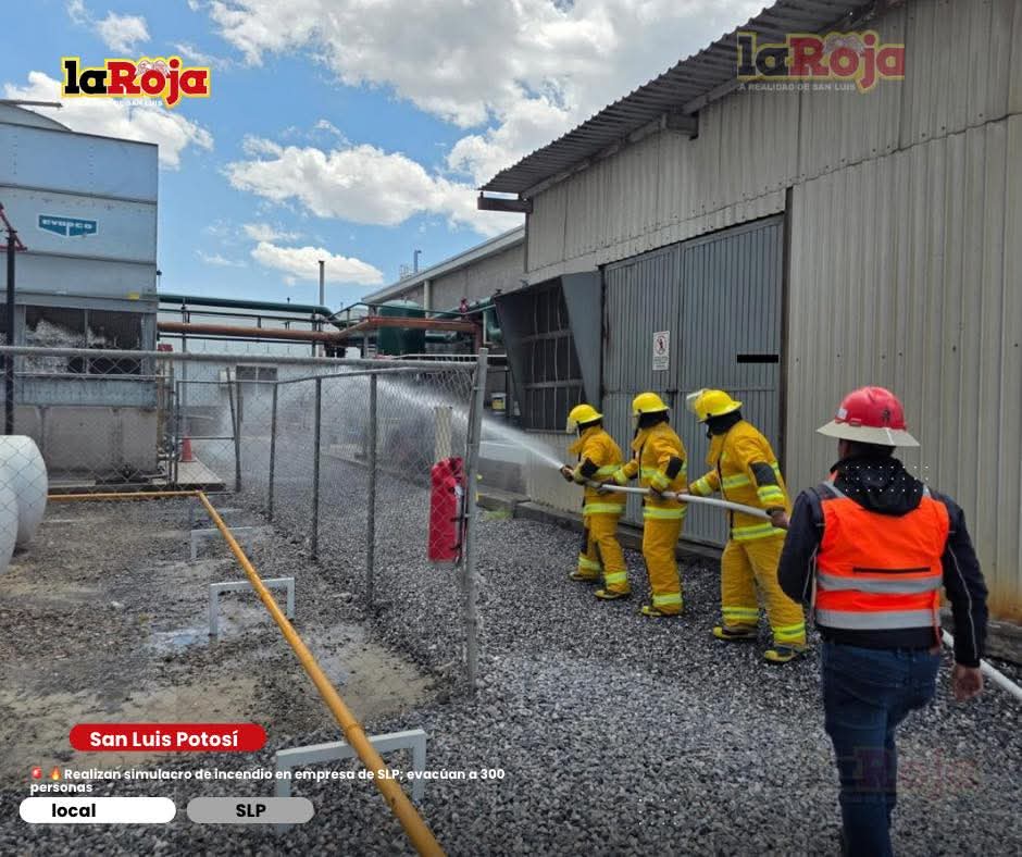 La Coordinación Estatal de Protección Civil llevó a cabo un simulacro de evacuación en la empresa FEVISA, dedicada a envases de vidrio, con la hipótesis de un incendio provocado por una falla eléctrica en el área de compresores.