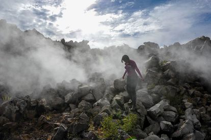 El pueblo desapareció bajo la lava del volcán, las personas lo abandonaron y solo quedó de pie una columna de la iglesia del Señor de los milagros, que es ahora uno de los atractivos turísticos emblemáticos del Estado.