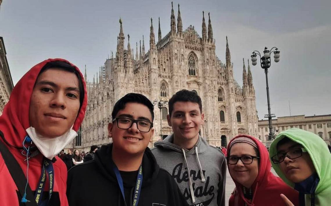 Los alumnos Xavier André Bautista, Reyes Guadalupe Puente y Dario Estrada Camargo acompañados de su maestra Hilda Lucía Cisneros viajaron al viejo continente para participar en un prestigioso concurso de ciencias con sede en la ciudad de Milán, Italia.
