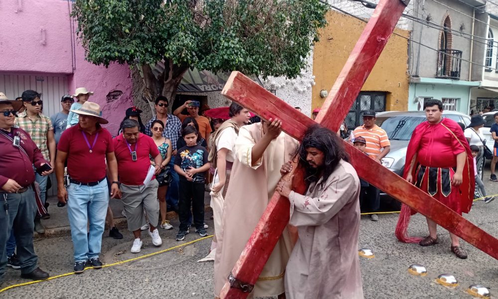Desde temprana hora los feligreses, tomaron su lugar en el tramo del Santuario de la calle Pedro Urtiaga, donde fueron colocados los templetes para llevar a cabo la representación.