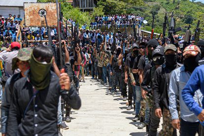 Una docena de hombres armados con fusiles, caras cubiertas con un pañuelo, gorras y ropa oscura posa mientras mira a cámara. En el medio, el que aparenta ser el líder, con un jersey verde, lee un comunicado con siete reivindicaciones: “Respeto a nuestras demandas indígenas, no más desvíos de recursos del pueblo, ni sicarios ni narcotraficantes armados, cero tolerancia a la venta de drogas en lugares clandestinos, no más muertes, atención médica digna, que la seguridad pública sea para el pueblo y no para los delincuentes”. Detrás de él, una lona roja. A mano, escrito en letras negras: Fuerza Armada de Simojovel (FAS). Este grupo, nacido a principios de octubre en el Estado de Chiapas, no es un fenómeno nuevo, sino que simboliza el último escalafón de una realidad que existe en México desde la década de los noventa, pero que en los últimos años ha cobrado cada vez más y más fuerza: los grupos de autodefensa y la policía comunitaria.