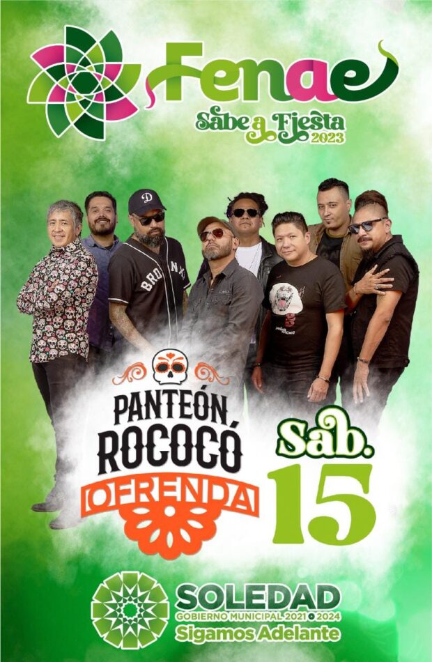 Desde la Gustavo A. Madero, Ciudad de México, llegará a Soledad de Graciano Sánchez, Panteón Rococó con los éxitos que los posicionan como una agrupación exitosa que mezcla diferentes ritmos en cada una de sus melodías, que van desde el punk, el rock y ska.
