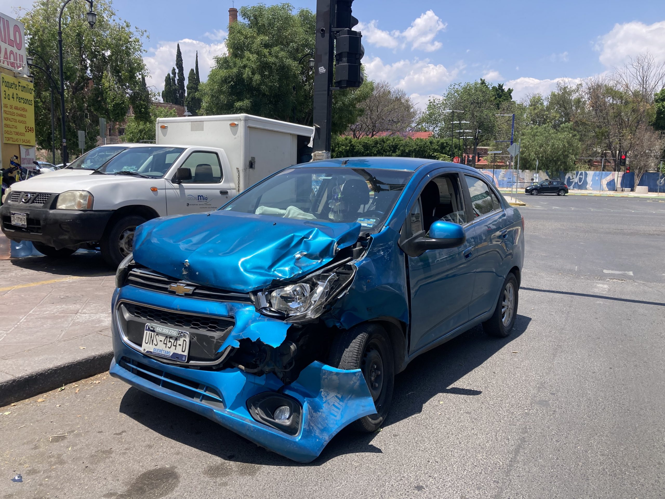 Unidad de la Policía Municipal de Querétaro, se vio involucrada en un hecho de tránsito con un automóvil particular, en la avenida Universidad, en la zona Centro de la capital queretana, el cual dejó como saldo sólo daños materiales.