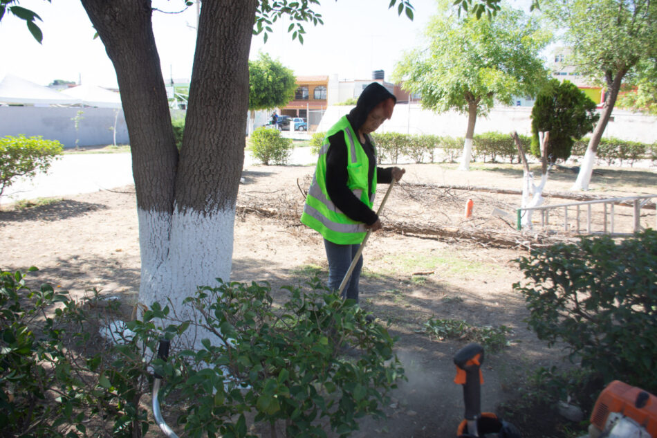 Por indicaciones de la alcaldesa, Leonor Noyola Cervantes, la Dirección de Servicios Municipales continúa brindando mantenimiento a las diferentes zonas de la localidad con la intención de embellecer las áreas públicas y crear espacios que permitan el sano esparcimiento así como la práctica de actividades deportivas en el municipio.