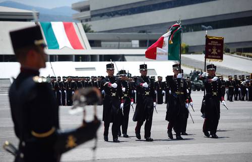 El titular de la Defensa, Luis Cresencio Sandoval, encabezó la ceremonia de abanderamiento de la delegación de cadetes que irá a Francia a la conmemoración del 160 aniversario de la Batalla de Camarón, Veracruz.