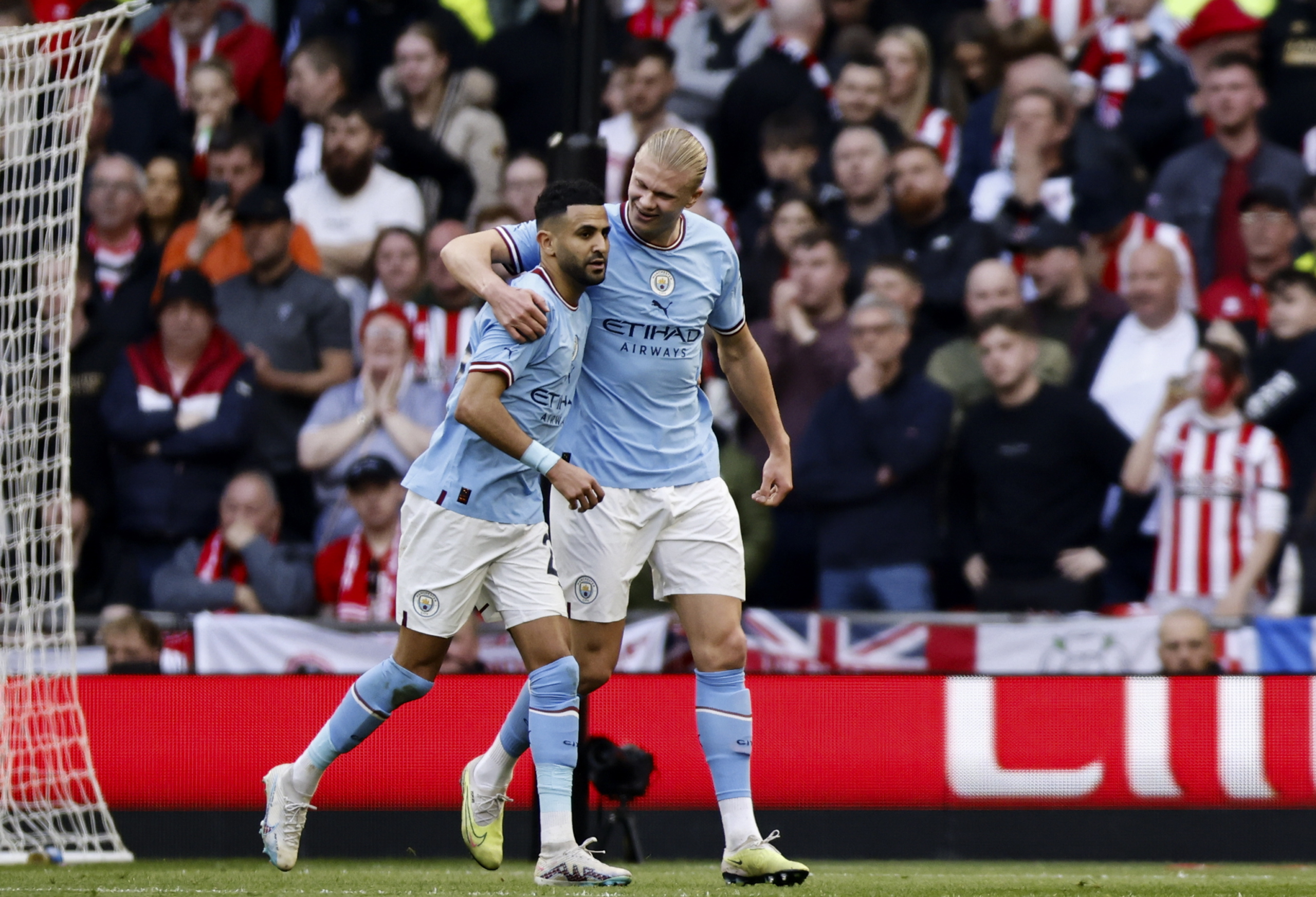 Habra sido el primer gol que encajan los citizens en la FA Cup, ya que en cinco partidos llevan 17 goles a favor y ninguno en contra. Haaland, que vena en este torneo de hacerle un hat-trick al Burnley en el 6-0 de la eliminatoria anterior, se convirti en un espectador ms de la exhibicin de Mahrez.
