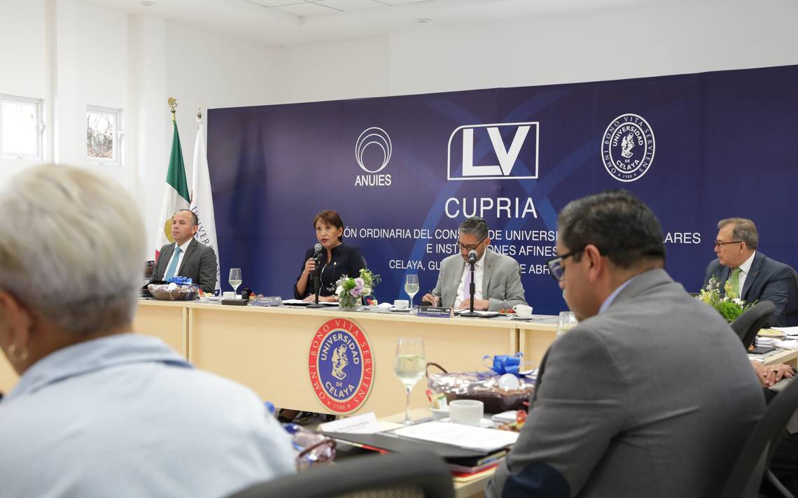 CELAYA, Gto. (OEM-Informex).- En el marco del 35 Aniversario de la Universidad de Celaya, se llevó a cabo la “LV Sesión Ordinaria del Consejo de Universidades Particulares e Instituciones Afines” (CUPRIA), en la que se revisaron y analizaron temas como el Proyecto del Corredor Interoceánico del Istmo de Tehuantepec y los Avances en el Programa de Trabajo del Sistema de Evaluación y Acreditación de la Educación Superior, por nombrar algunos.