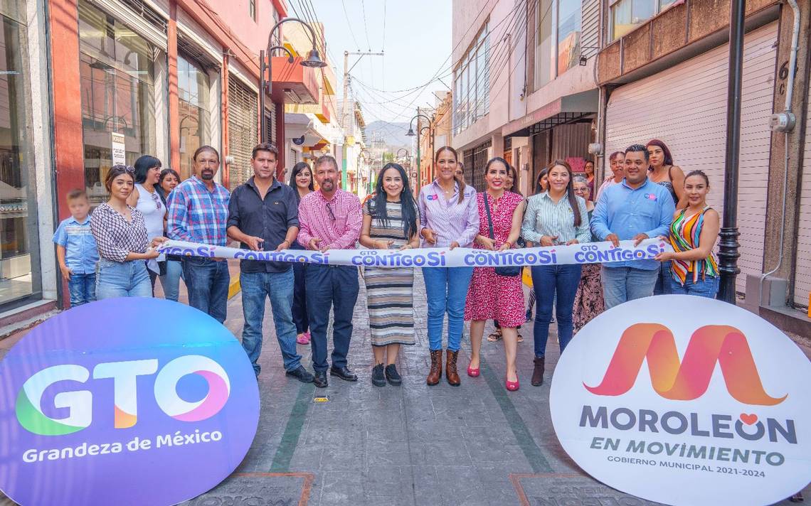 La representante de SEDESHU estuvo acompañada de la alcaldesa de Moroleón, Alma Dennise Sánchez, para la entrega de la pavimentación de la calle Vicente Guerrero, que beneficiará a los vecinos y comerciantes de la zona, además de mejorar el acceso al Jardín Principal y al Templo del Señor de Esquipulitas.
