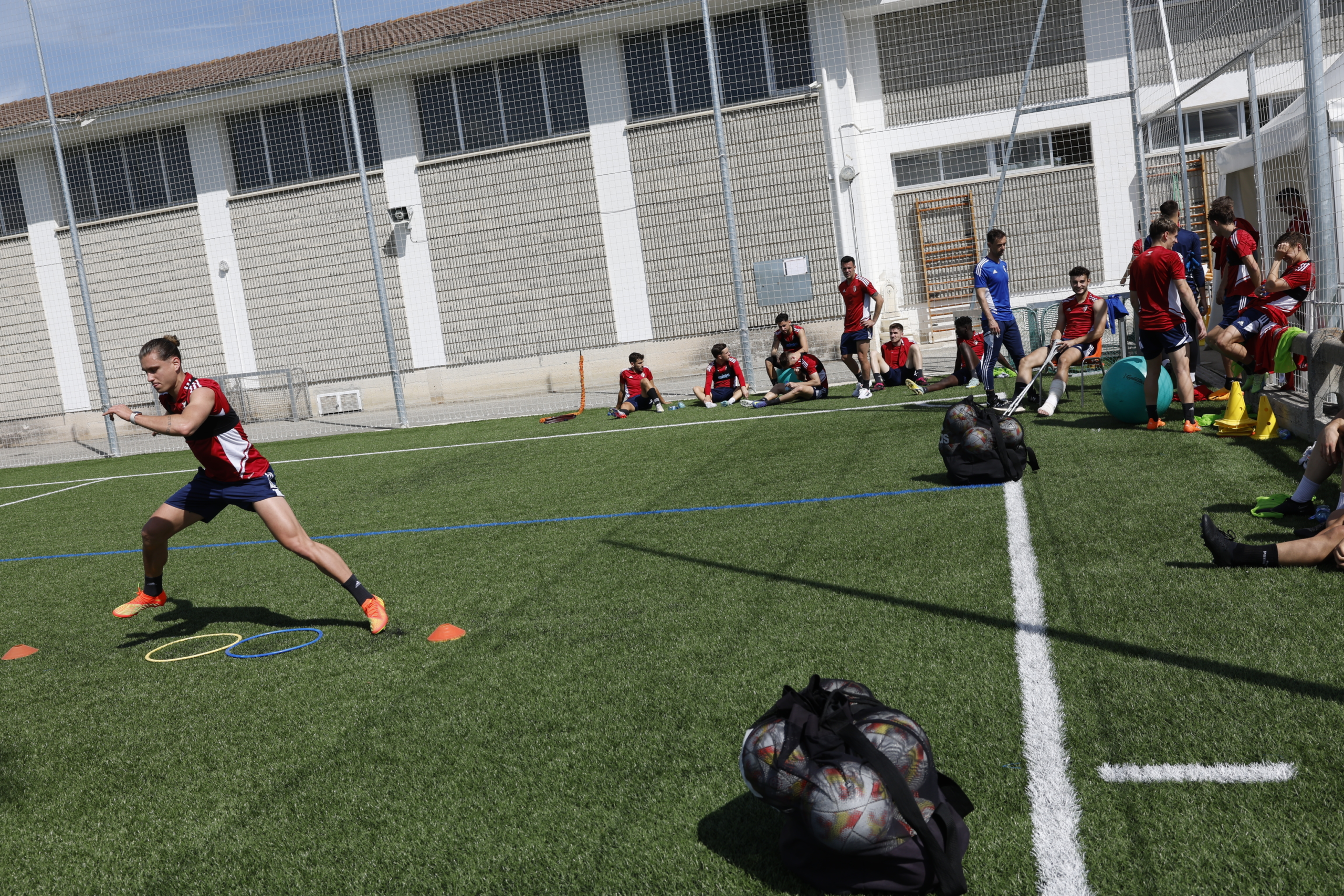 En Tajonar, una localidad de apenas medio millar de habitantes pegada en asfalto y sentimiento a Pamplona, Osasuna construy a principios de los ochenta unas instalaciones que hoy son principio y fin de los xitos del equipo. Un complejo que ms all de los edificios y los campos de ftbol, sirve para comprender la idiosincrasia del club gracias a su gente, sus empleados. Este peridico entra en Tajonar con la libertad de ser uno ms en una maana de trabajo cualquiera. El frenes por la final de Copa contagia el carcter normalmente calmado de los navarros, pero la vida sigue mientras el sbado se acerca. Los casi 200 nios y nias que se forman en las categoras inferiores entrenan con la misma normalidad que lo hace el primer equipo de Jagoba Arrasate, que se despide con prisa despus de una breve conversacin porque debe recoger a sus hijos del colegio. Es el resumen de un club.