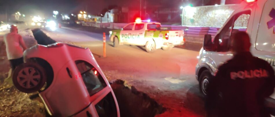 Al recibirse el reporte, los agentes se trasladaron al lugar indicado, a la altura de la colonia Primero de Mayo, en donde se lleva a cabo la construcción de un puente vehicular. El área del incidente cuenta con señalética correcta y advertencia de una zanja, sin embargo de acuerdo a los peritajes correspondientes, una maniobra incorrecta del automovilista causó el hecho.
